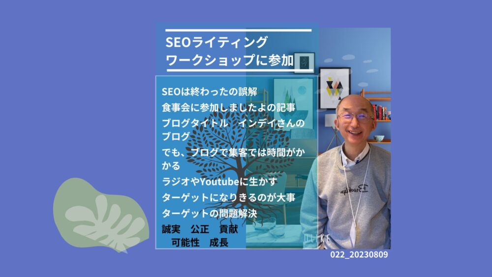 こんにちは、インデイです。(リライト20250911更新記事) 下記は2023年の8月のSEOライティングワークショップに参加した感想のYoutubeの文字起こしです。 ワークショップの時点ではSEOの知識が無かったので […]